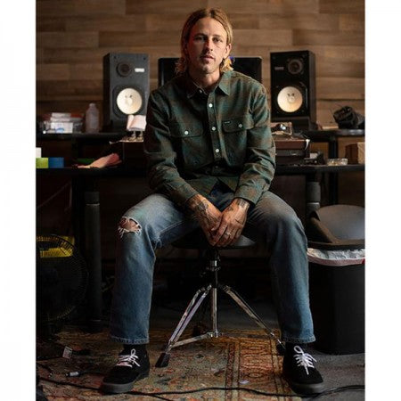 両胸にフラップポケットが付き、左ポケット部にBRIXTONラベルが付いています。