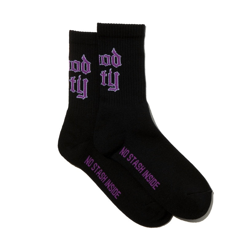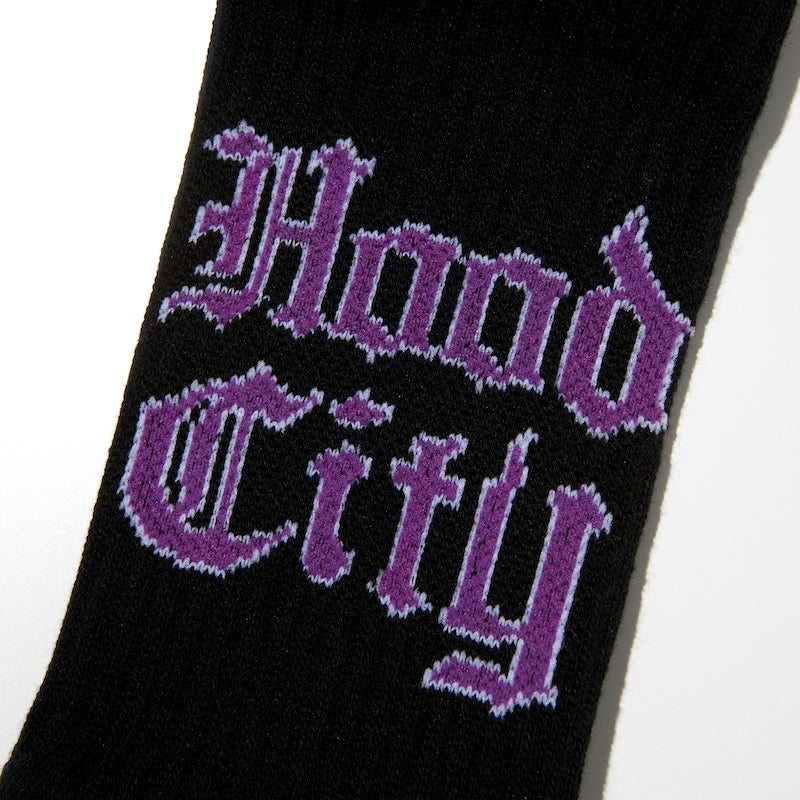 新色の「HOOD CITY」柄のミッド丈チューブソックス。