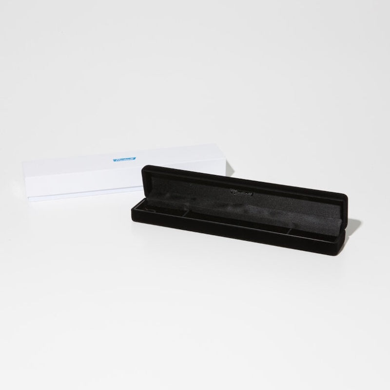 ケース内側にロゴがシルバー箔押しプリントで入る。