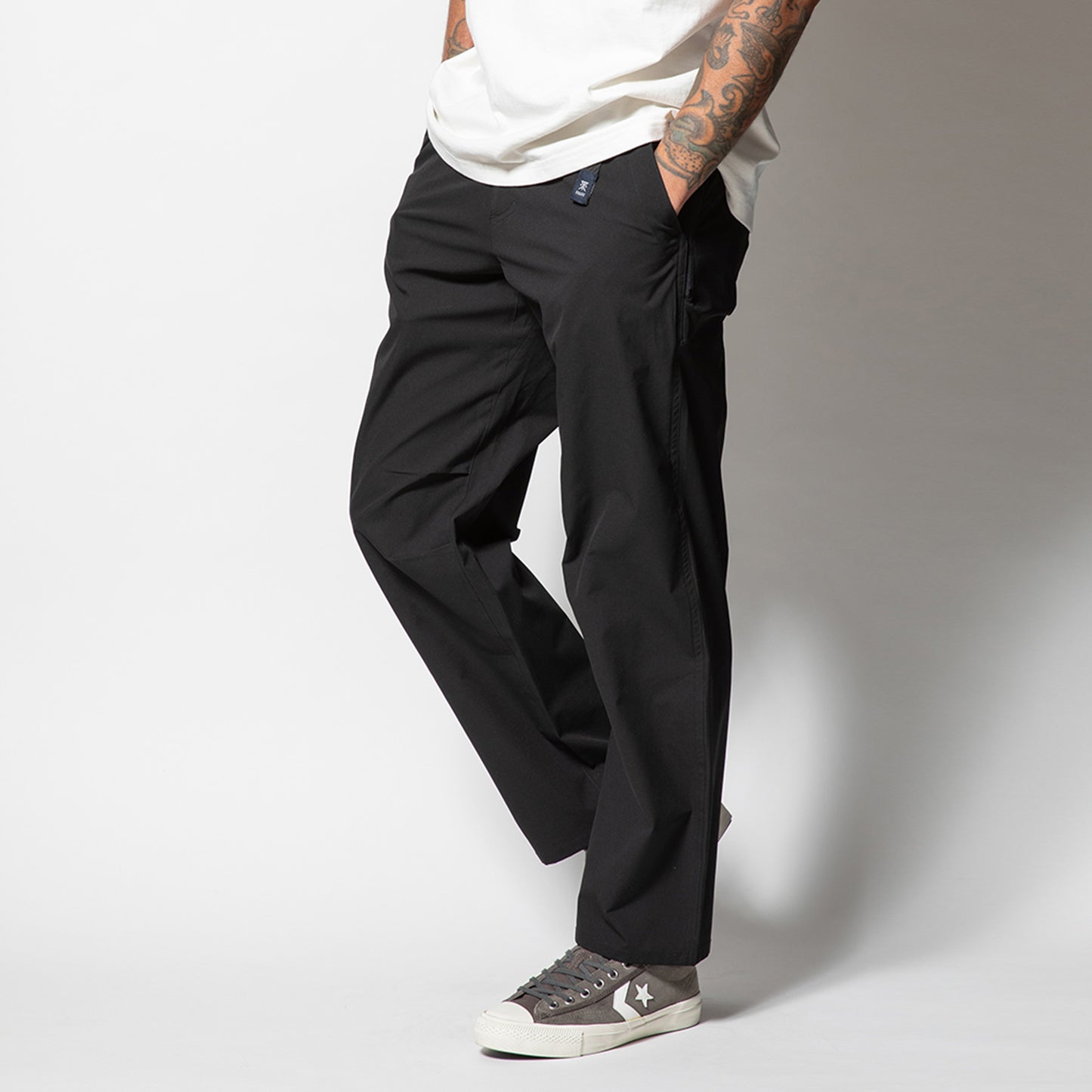 180度自然な開脚が可能なガゼットクロッチ、象徴的なバーティカルZIPポケット、片手でも調整可能なベルトの仕様と高い機能性は前モデルから引き続き採用。
