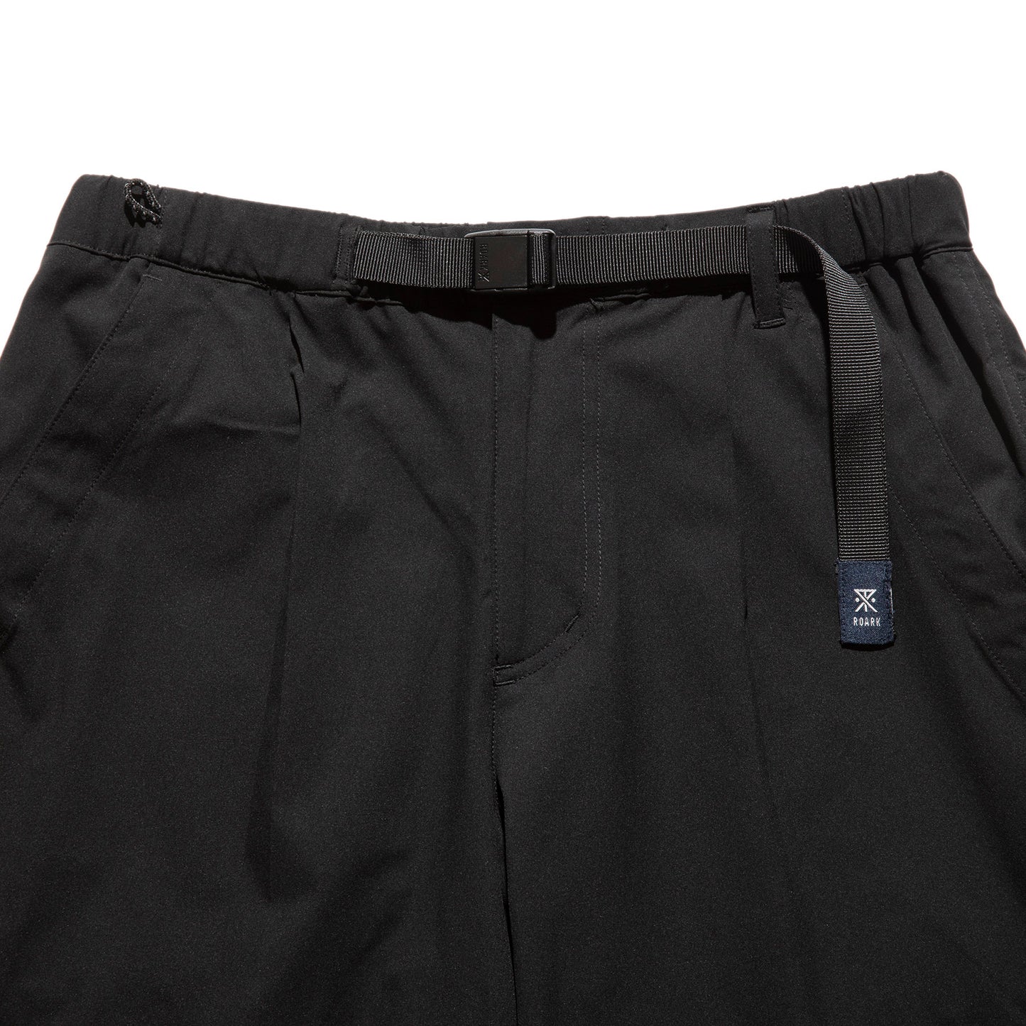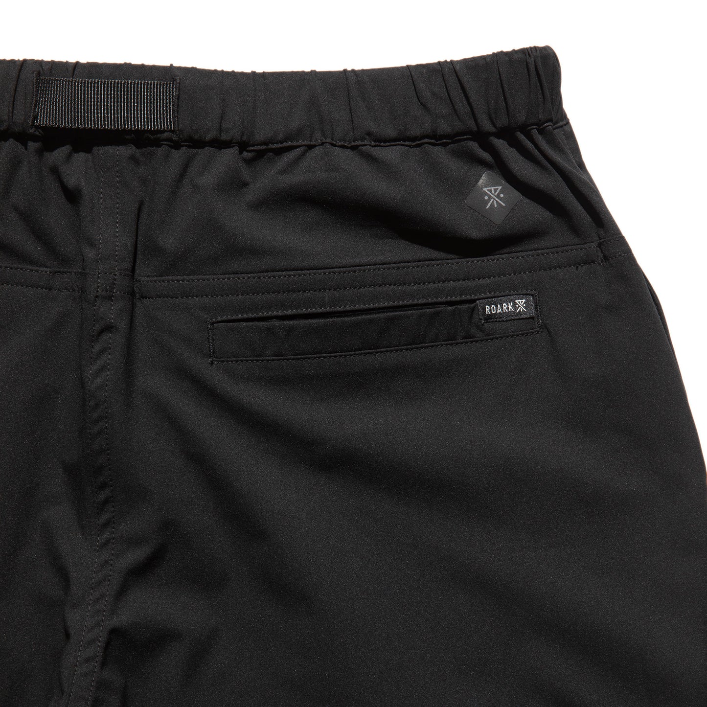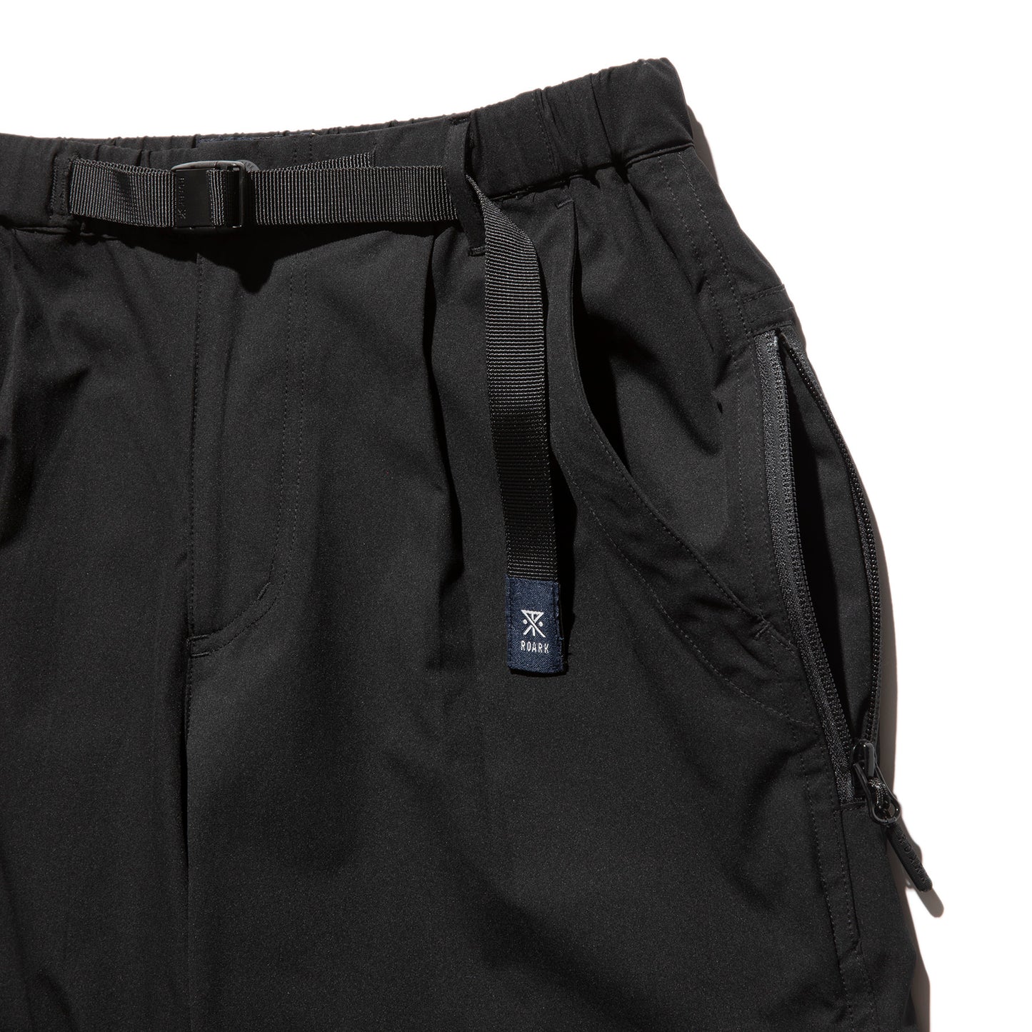 ウェービングベルトにはROARKのブランドアイコン、バックポケットにはブランドロゴがあしらわれています。