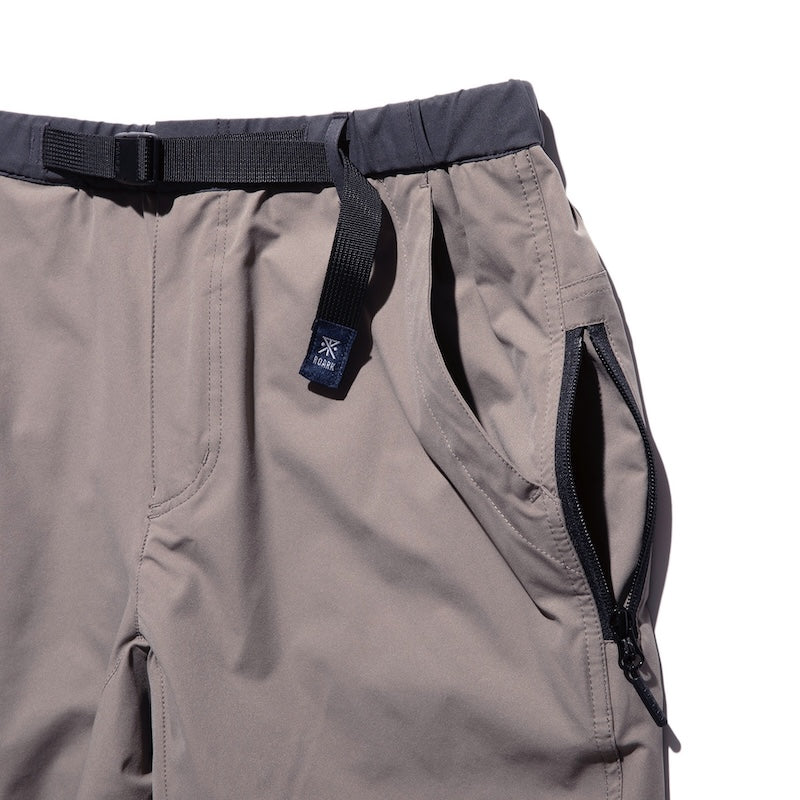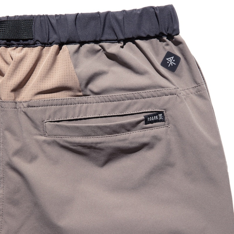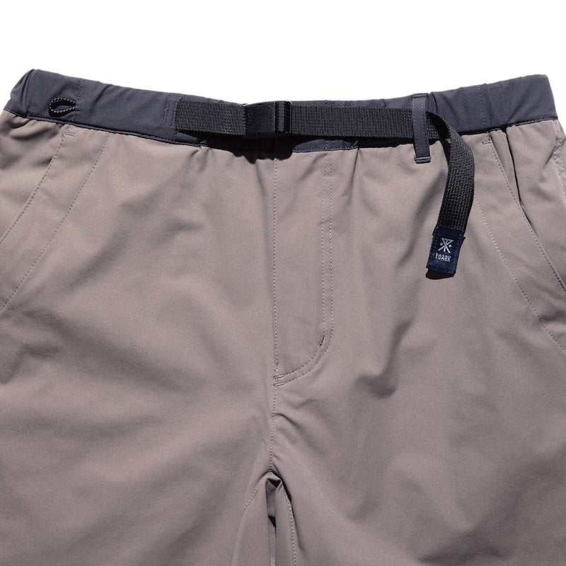 環境負荷の低い原料を使用し、ドライな質感で透湿・速乾・耐摩耗・ストレッチ・撥水・耐久性の機能を併せ持つROARK独自開発ファブリック "ROAM FREE FLEX"を採用した、TRAVEL SHORTS。