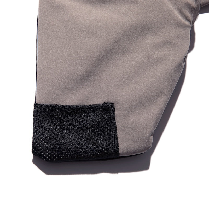 180度自然な開脚が可能なガゼットクロッチ、象徴的なバーティカルジップポケット、片手でも調整可能なベルトの仕様など高い機能性も併せ持ちます。